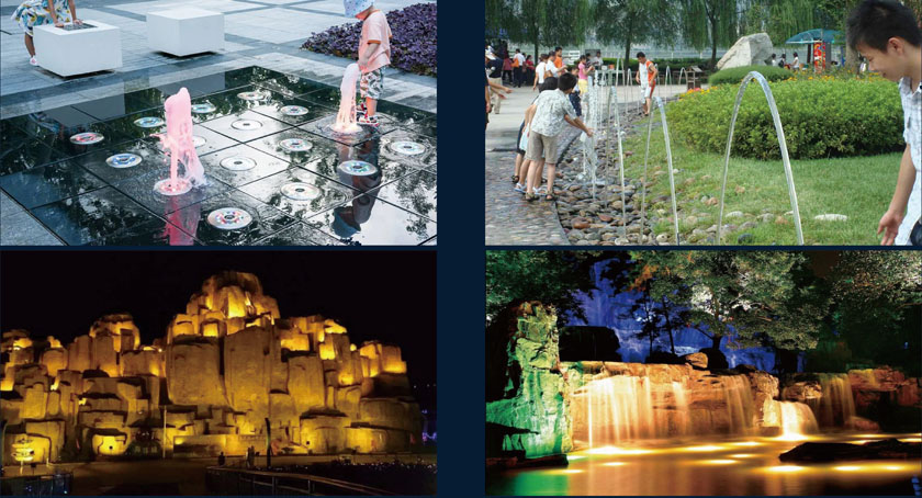 公园内重要节点-假山跌水、假山灯光、矩阵、互动波光